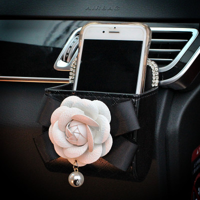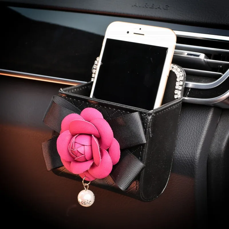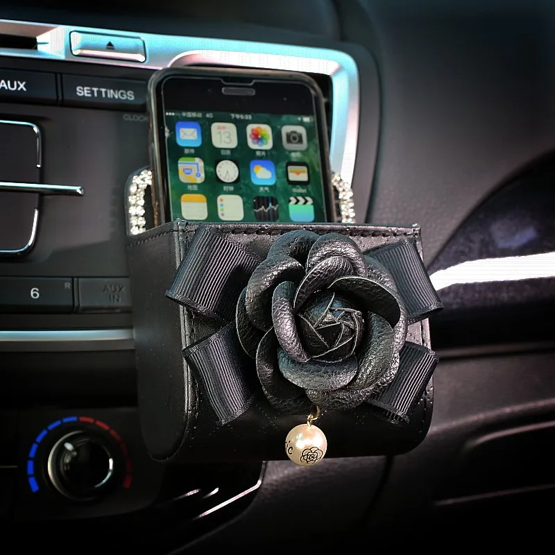 منظم فتحات تكييف عملي وأنيق لحماية وتنظيم أغراضك داخل السيارة، مصمم ليعلق على فتحة التكييف بسهولة، ويحتوي على حقيبة تخزين لحمل الهاتف، المفاتيح، أو النظارات. يأتي مزينًا بزهرة كاميليا كبيرة ولمسات كريستالية تضيف لمسة فاخرة للسيارة. مصنوع من مواد متينة تضمن الاستخدام الطويل، ويسهل الوصول إلى الأغراض أثناء القيادة، مما يجمع بين الوظيفة والجمال في تصميم واحد.